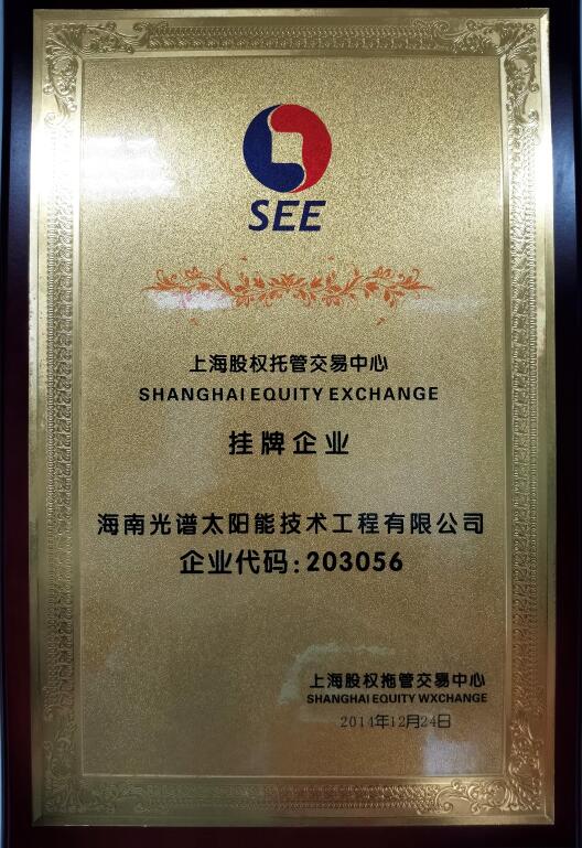 海南光譜節(jié)能環(huán)保科技有限公司成立于2001年,注冊資本1018萬元人民幣,是一家專業(yè)的太陽能、中央空調(diào)工程技術系統(tǒng)集成商。2014年12月24日,我司在上海股權托管交易中心成功掛牌,上股交代碼為:203056。